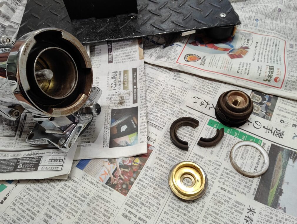 今回のお漏らし原因はグループヘッドのピストンに付いているパッキンの経年劣化です。