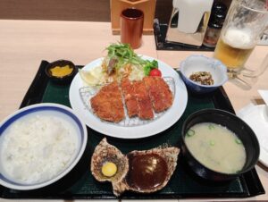 この日は一日かけて移動だったので夕方に少し現場に入ってその後はその現場から徒歩30秒の地元料理屋さんで黒豚のとんかつと鳥串を芋炭酸割で流し込みました。